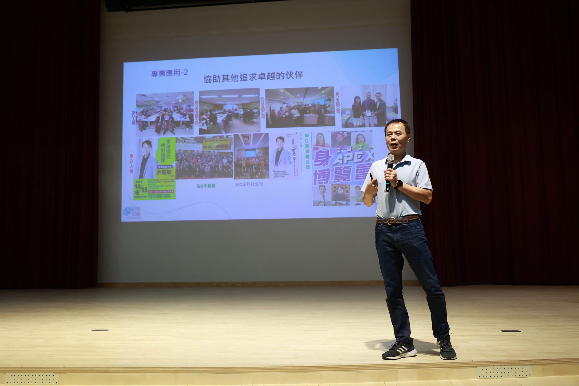 洪聰敏教授以「動機、自信、逆境調適、應變力與人際運作」五大心理技能為主軸,引導學生進行自我檢視與反思。他分享自身從乒乓球國手、軍事顧問到企業講師的轉變過程,強調心理訓練是跨越挫折與突破自我的關鍵。「心理力的強弱,決定一個人在成就舞台上的競爭力,」洪教授指出,唯有持續挑戰自我、縮短努力與目標的距離,才能在變動的環境中不斷前進。