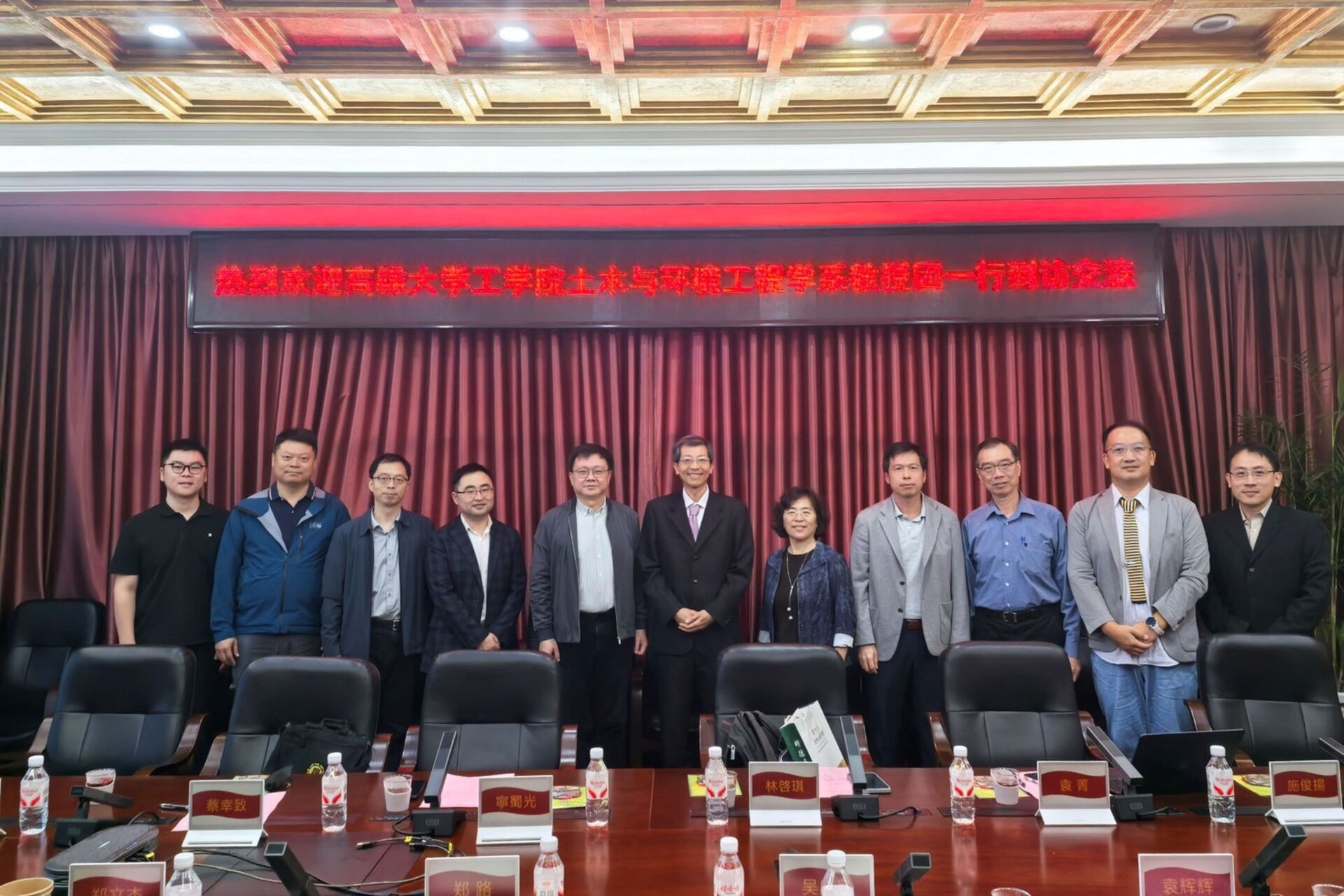 高雄大學代表團於 11 月 10 日到訪福州大學,包括土環系主任林啓琪與多位師長及研究生。代表團在土木工程學院與環境與安全工程學院分別與黨委書記、院長助理與多位教授座談交流,並參訪實驗室。雙方針對學科定位、師資布局、研究成果與跨校合作流程進行全面討論,高大團隊亦分享土環系的系所發展特色及土木領域的教育成果。福州大學則介紹研究生訓練制度、課程架構及學分認定方式,雙方就研究訓練、招生作業與後續合作方向取得初步共識,並期待建立更緊密的科研聯結。