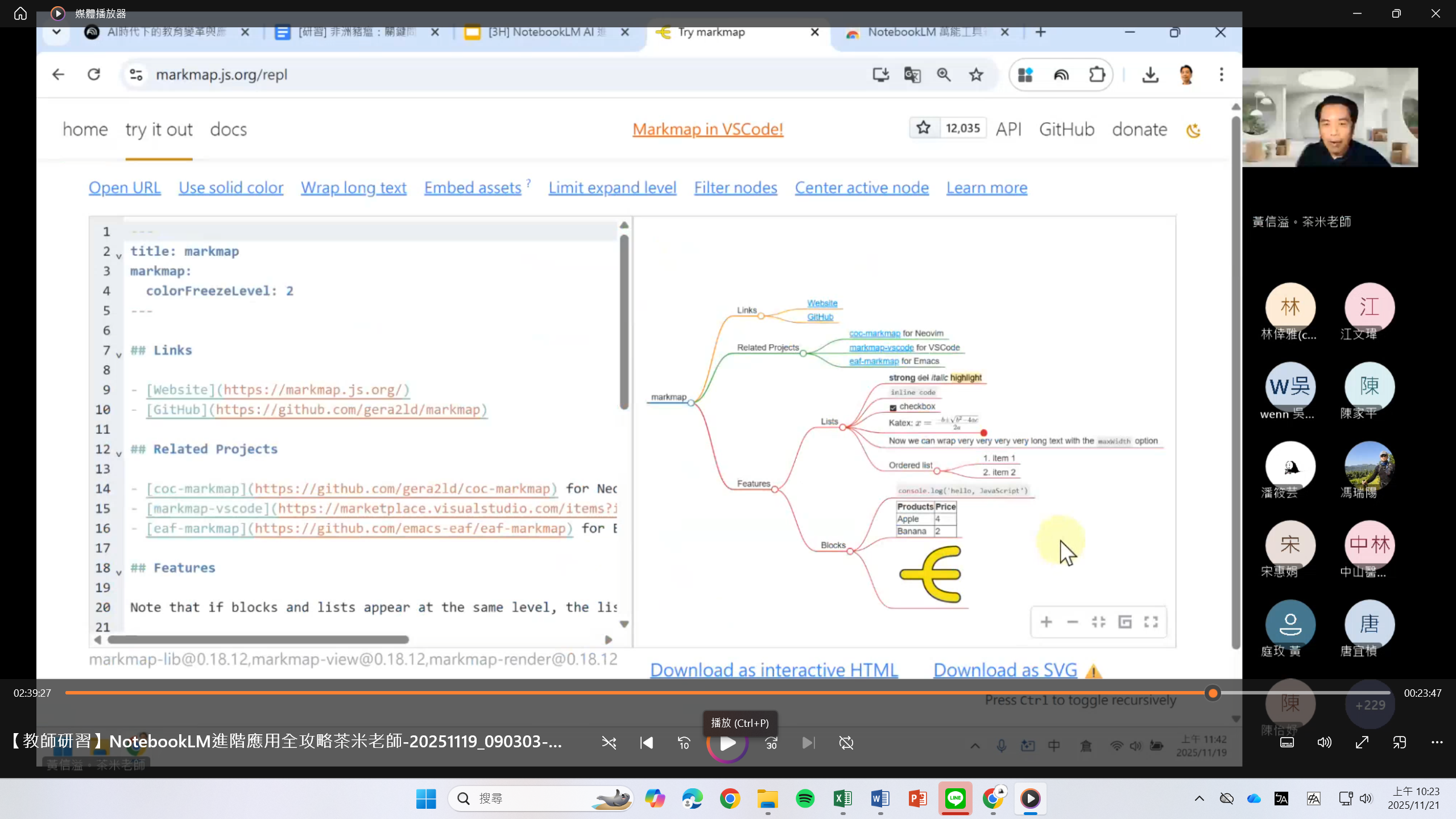 本次研習為 NotebookLM 系列的第二場課程。今年 6 月辦理的基礎場深受好評,許多教師在課後希望能學習更多進階技巧,因此教發中心規劃此進階應用課程,協助教師真正將 NotebookLM 用於資料分析、教學準備與研究統整。