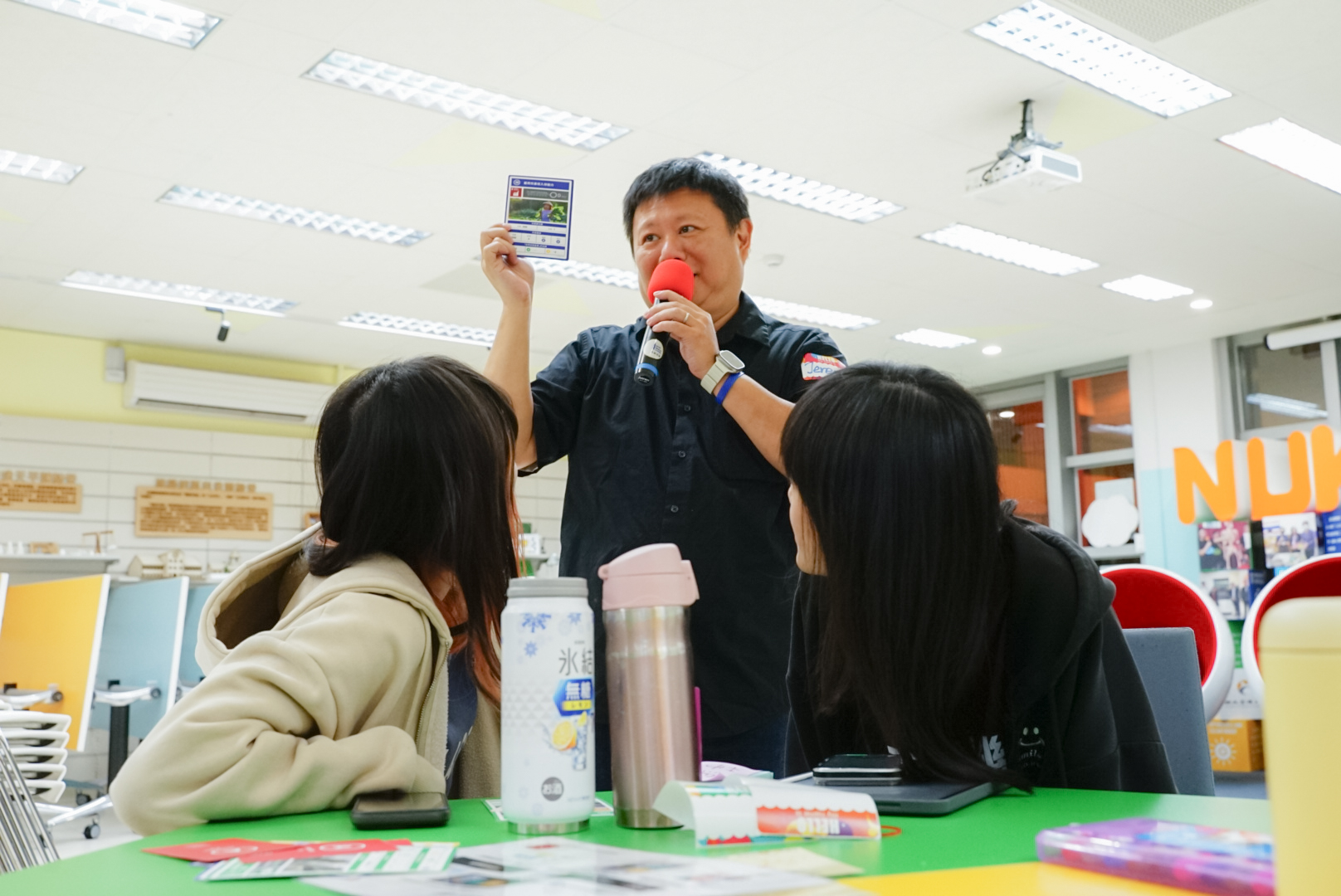 徐師介紹SDGs的起源與精神,並以朝邦文教基金會推廣的「2030 SDGs GAME」桌遊為媒介,引導學生思考不同角色對世界發展的影響。透過討論與反思,學生更清楚理解永續目標並非遙不可及,而是與日常生活緊密相關的核心議題。活動尾聲以「空白專案卡」作結,邀請學生從自身科系與專業出發,思考可以實際執行的永續專案,將所學與永續行動力相結合。
