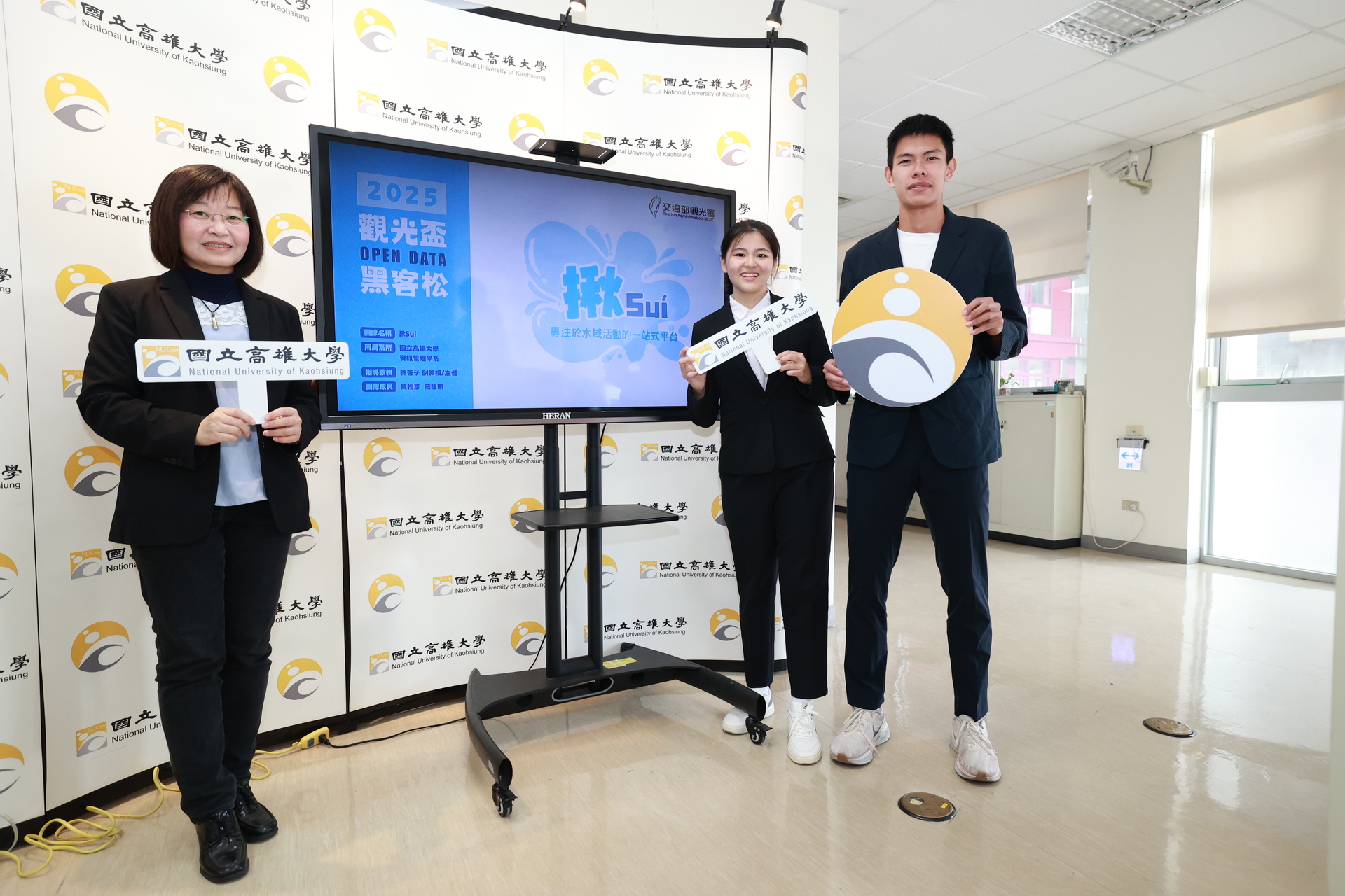 在國立高雄大學資訊管理學系副教授兼系主任林杏子指導下,學生萬柏彥、莊詠晴組成「揪Suí」團隊,以結合政府開放資料與智慧分析的一站式水域活動平台構想,從破百支參賽隊伍中脫穎而出,榮獲交通部觀光署第二屆「觀光盃 Open Data 黑客松」佳作。成果展現高雄大學推動資料創新與學用合一教學的具體成效。